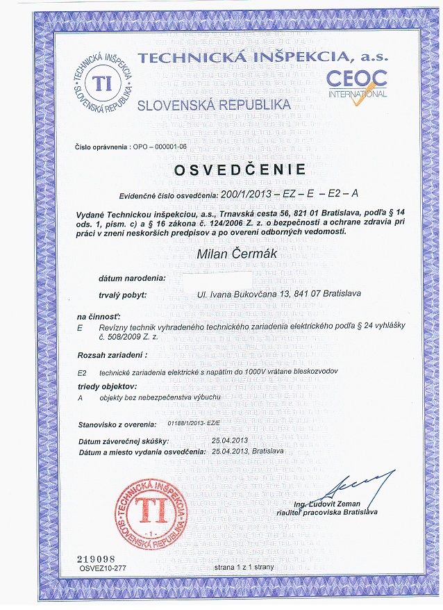 Milan Čermák - Revízny technik